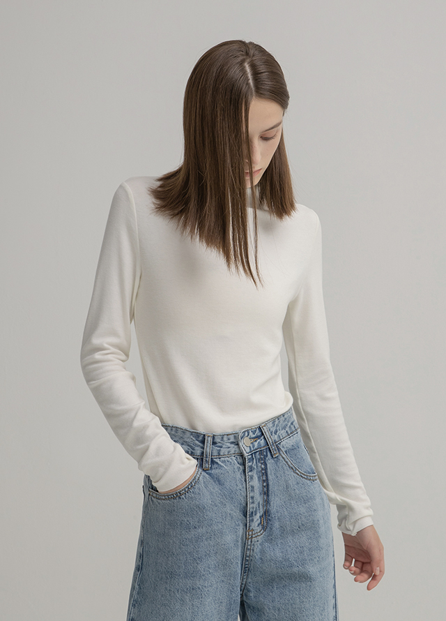 은은한 펄감이 돋보이는 터틀넥 탑으로,