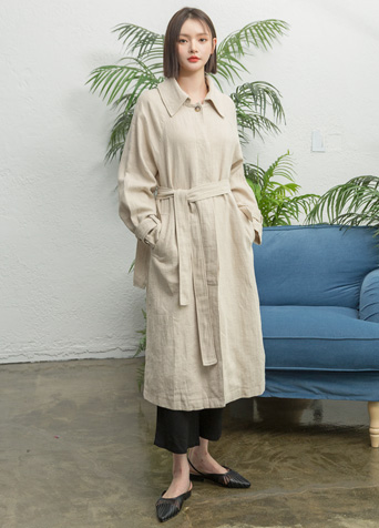 가볍고 시원한 터치감이 느껴지는 린넨 소재로 제작된 코트입니다.