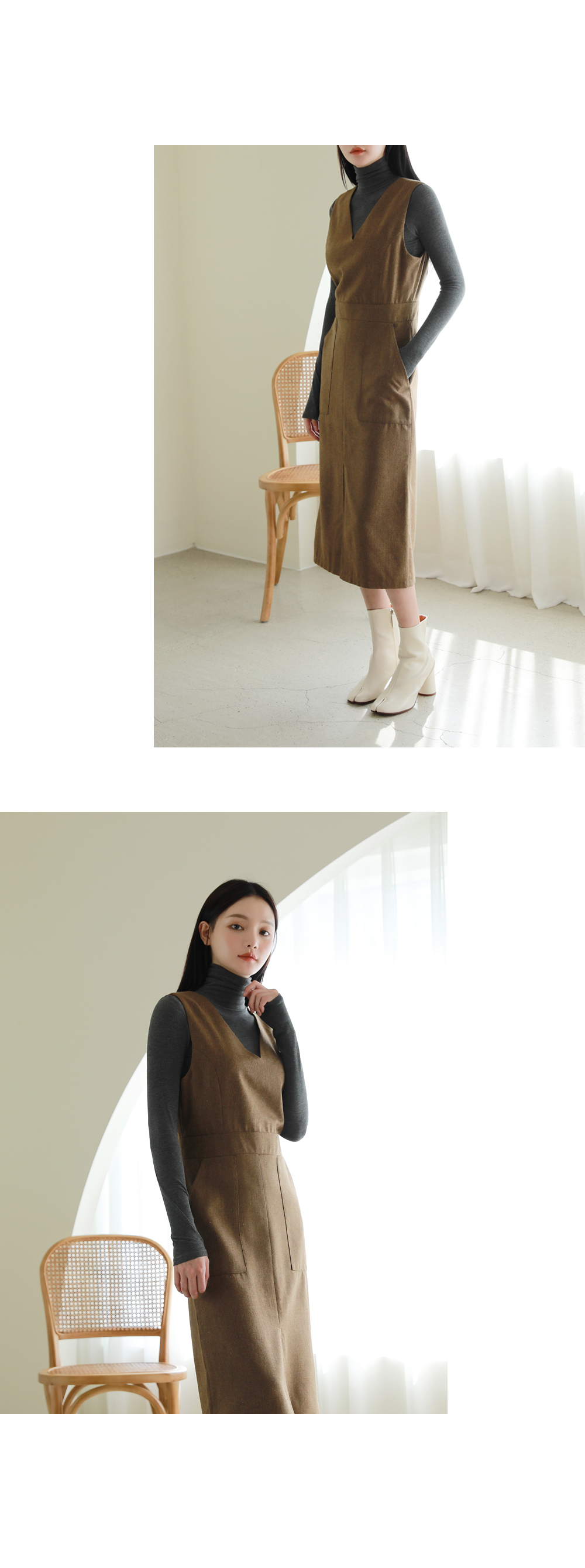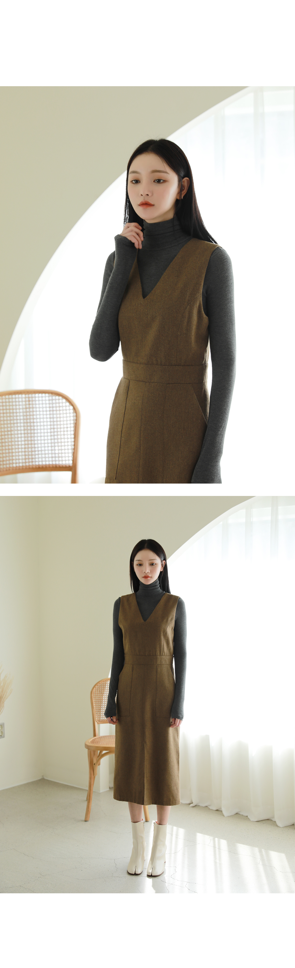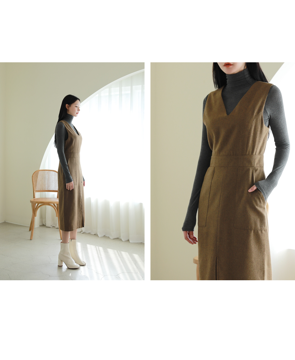 헤링본 소재로 제작된 레이어드 원피스입니다.