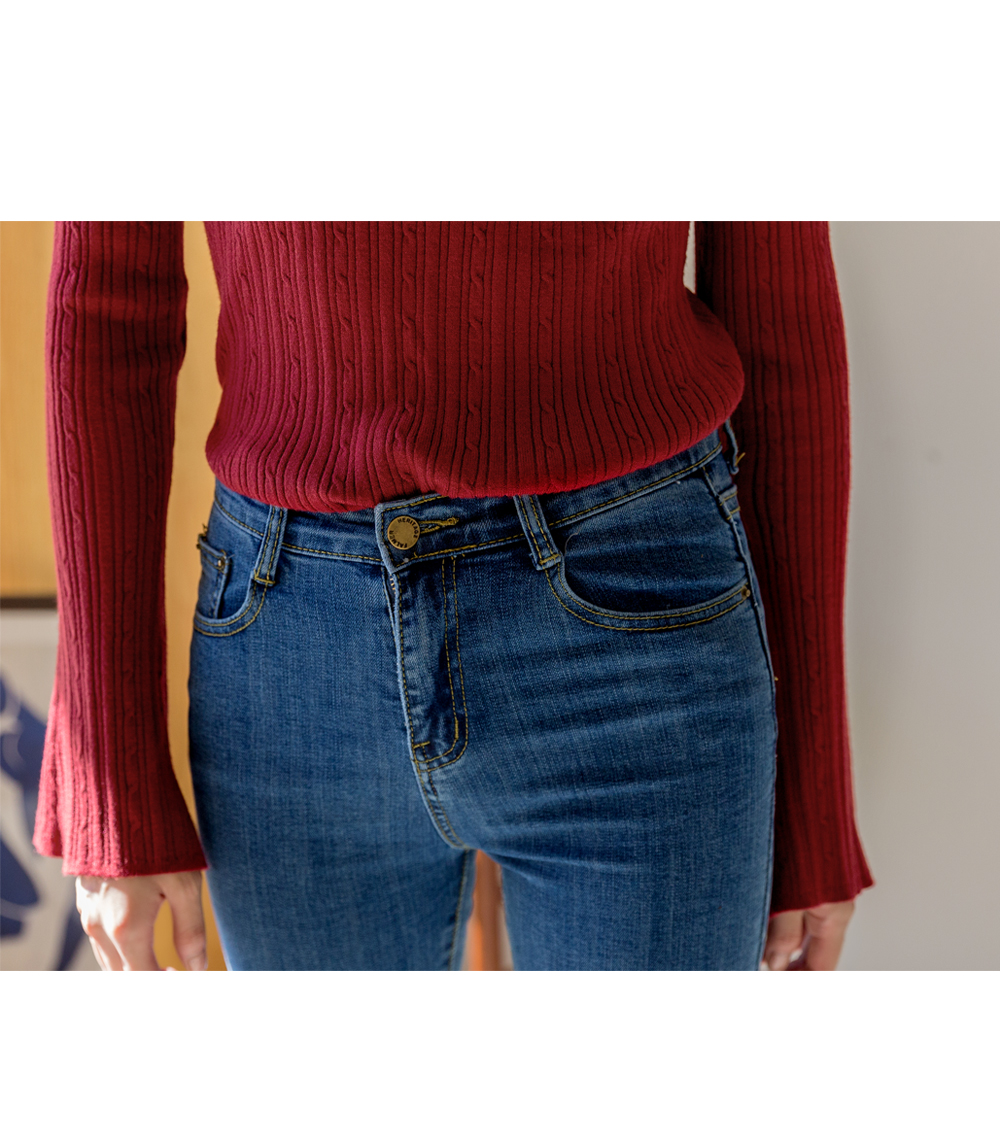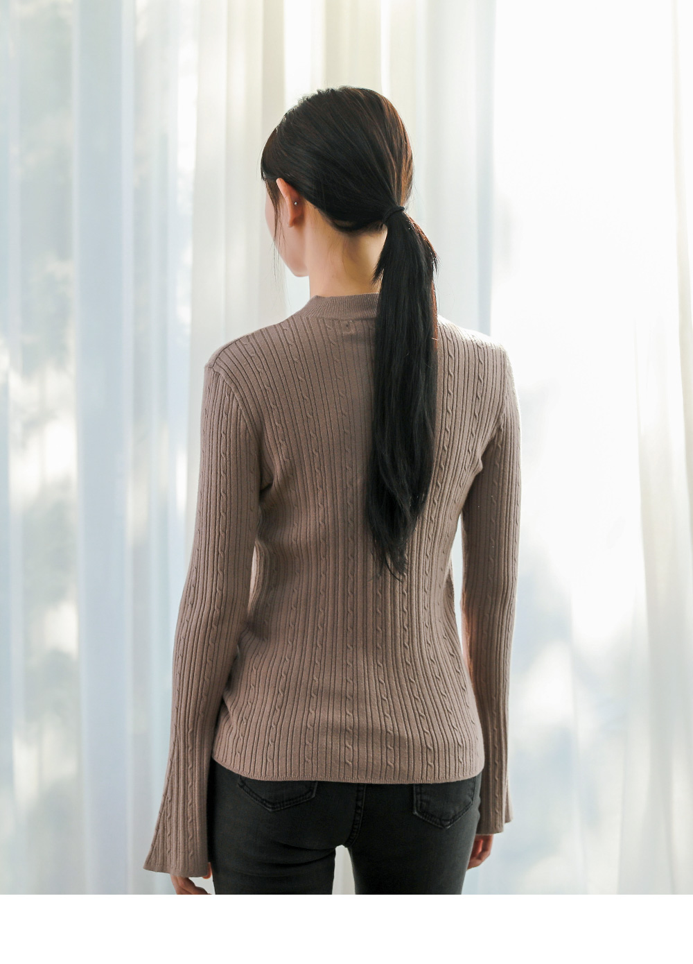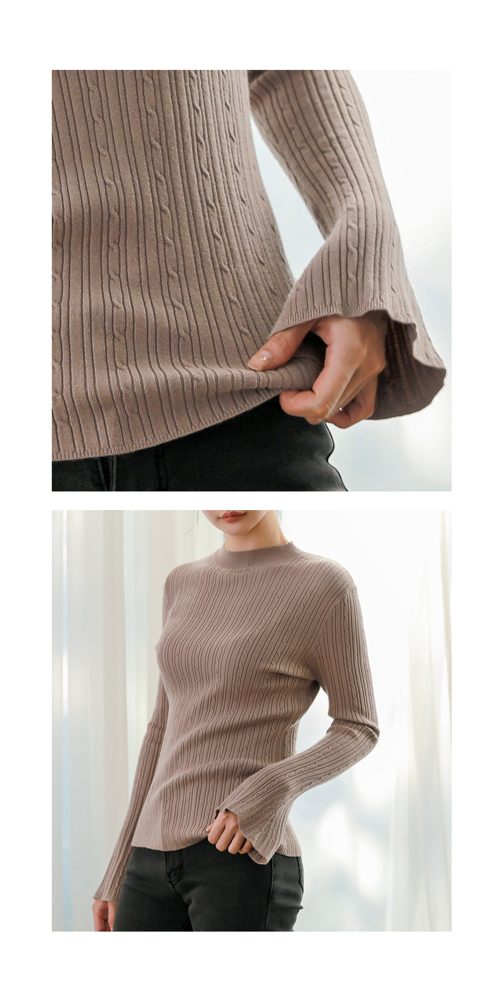 (T-4887)ベル袖ケーブルニット
