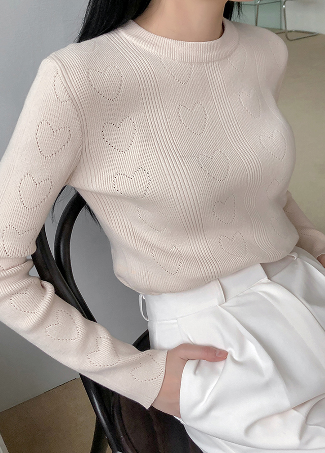 하트 패턴이 귀여우면서도 러블리한 무드를 자아내는 니트입니다.