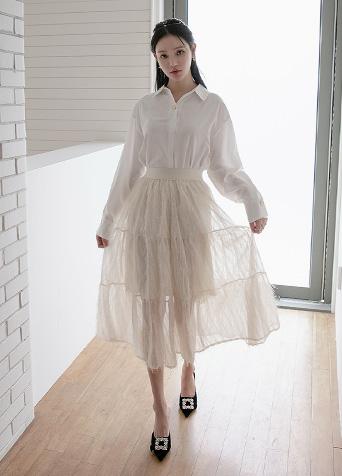 시어한 소재로 하늘하늘한 실루엣이 연출되며