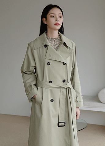 더블 버튼 형식의 클래식한 트렌치 코트로