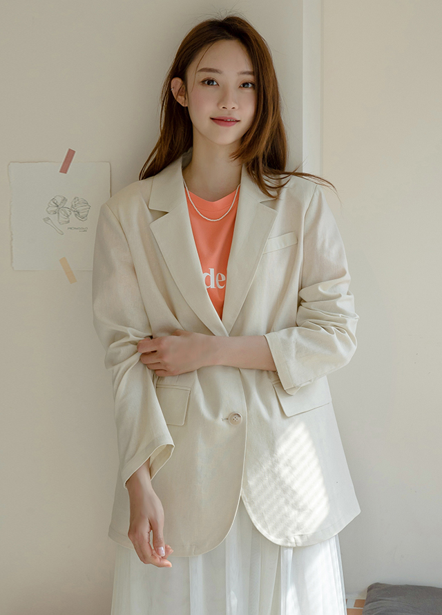 (JK-2135)リネンオーバーサイズシングルジャケット