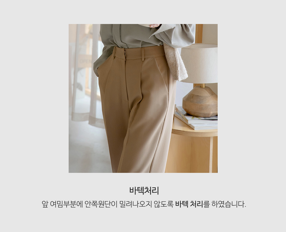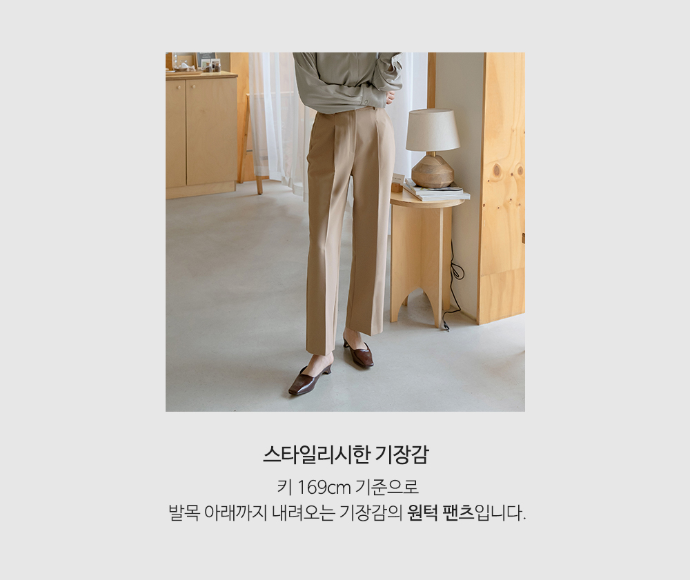 발목 아래까지 내려오는 기장감에 원턱디테일이 포인트인 팬츠입니다.