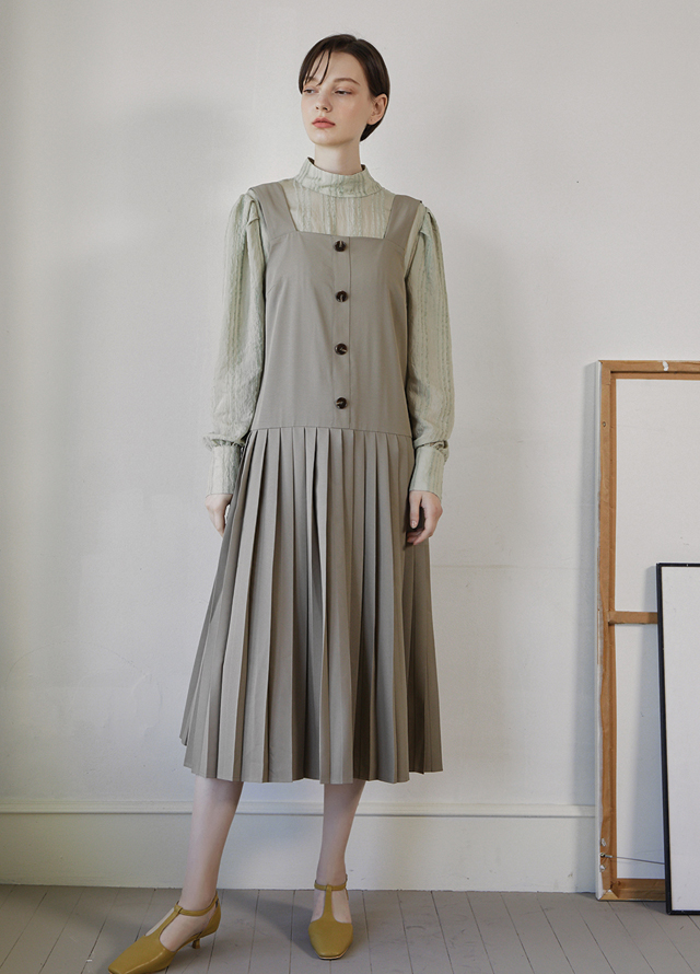 플리츠 주름이 길게 들어가 고급스러운 무드를 더해 주었습니다.