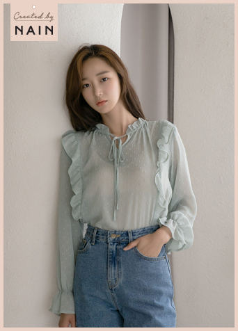네크, 몸판에 프릴 디테일로 포인트를 주었으며,