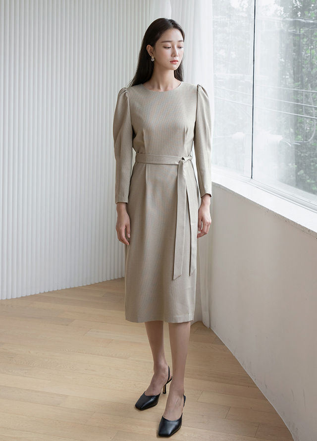 잔잔한 체크 소재로 제작되어 포멀하며, 소매에 볼륨으로 디테일을 준 원피스입니다.