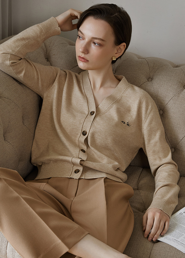 (CD-1515)NシグネチャーCD002-Vネック刺繍ポイントニットカーディガン