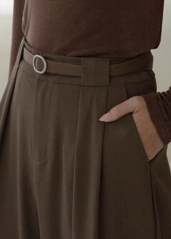 슬림한 벨트와 프론트의 핀턱 디테일이