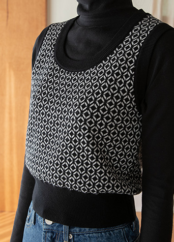 패턴 포인티드 니트 베스트를 소개합니다.