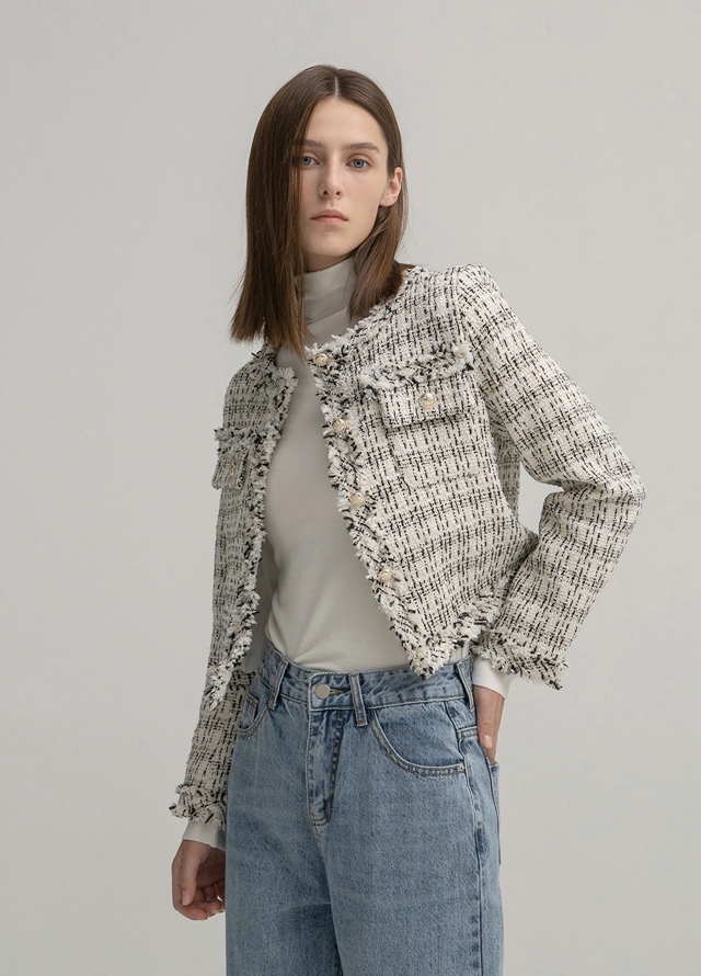 메탈 프린지 트위드 자켓을 소개합니다.