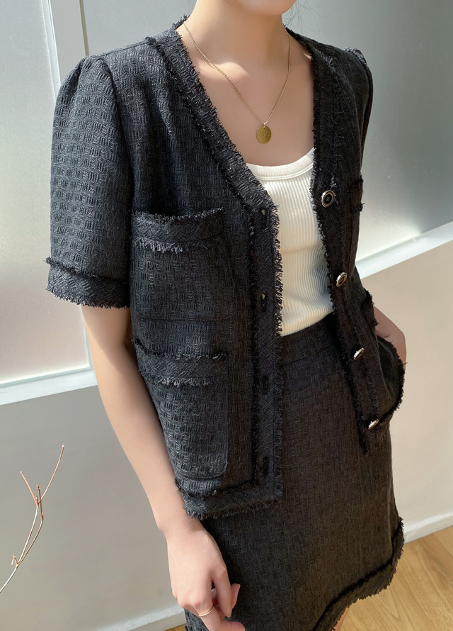 (JK-2396)セットアップサマーフリンジツイードジャケット