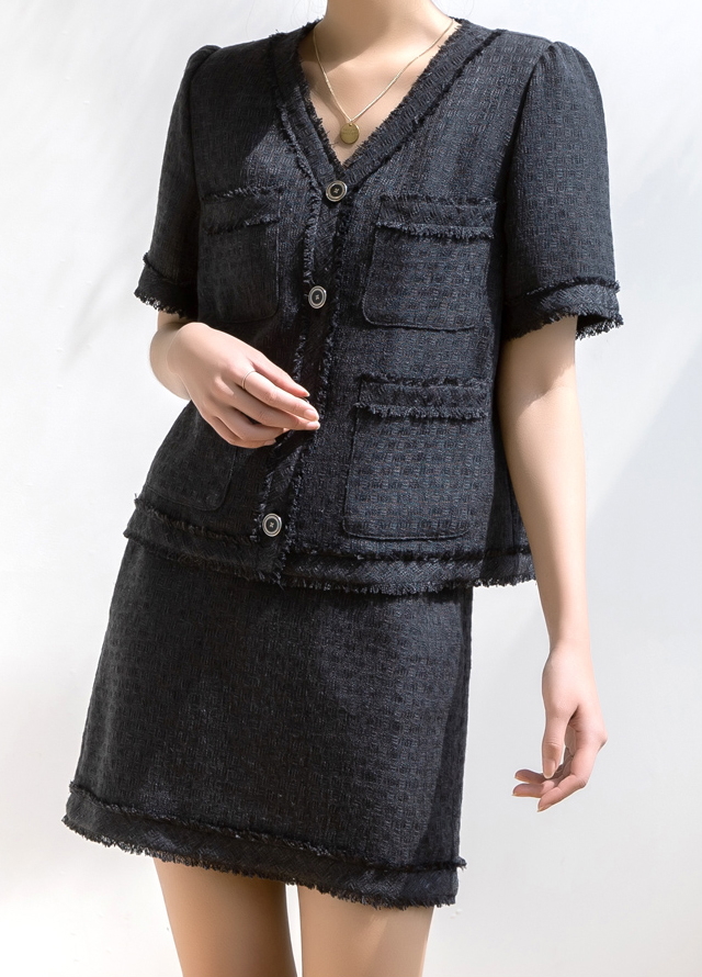 (SK-4235)セットアップサマーフリンジツイードミニスカート