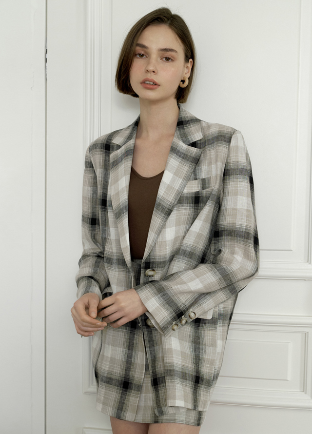 나인의 여름 신상품! 린넨 모던 셋업 체크 자켓입니다.