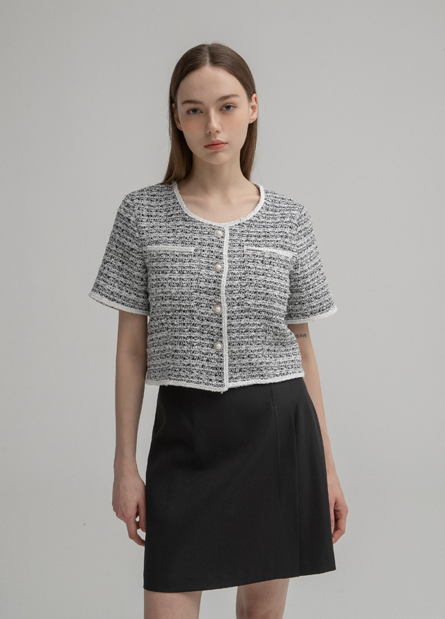 버튼 포인트 하프 트위드 자켓입니다. 클래식한 트위드 원단과 쉐입에 영하고 트렌디한 무드를 더한 아이템입니다.