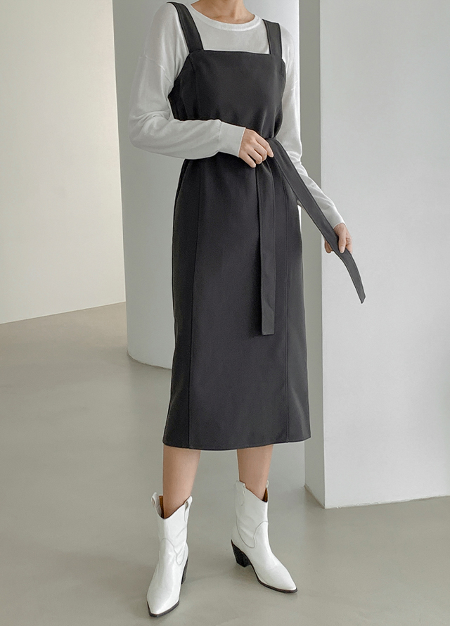 나인의 가을 신상품! 미니멀 벨티드 레이어드 원피스입니다.