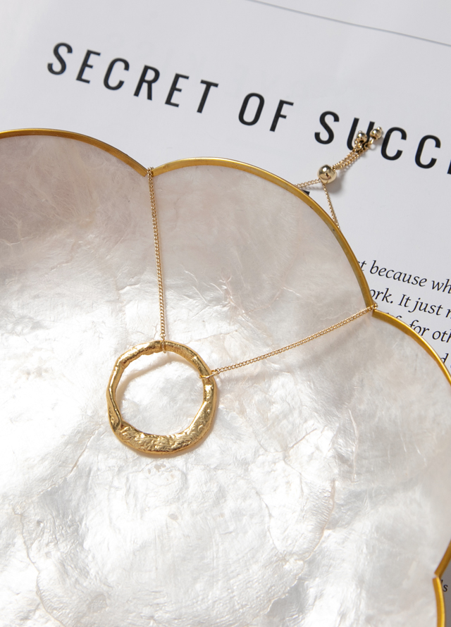 줄에 심플하게 이어진 러프 텍스쳐의 서클 오브제가