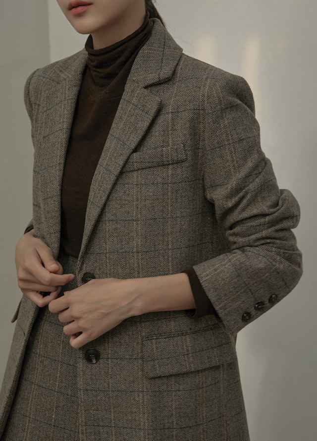 같은소재로 제작된 H핏 헤링본 셋업 미디 스커트와 함께 착용하실 경우