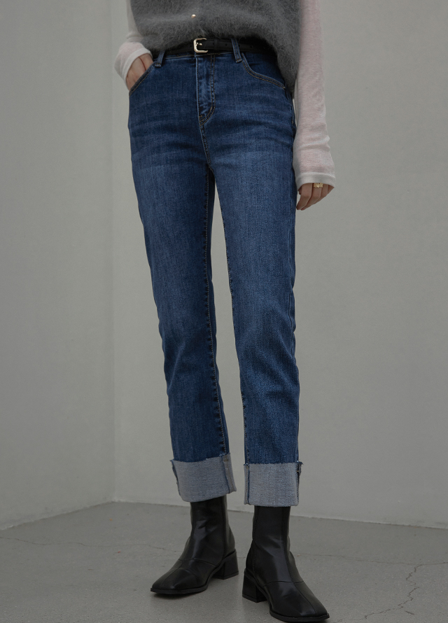 턴업 스트레이트 기모 데님 팬츠를 소개합니다.