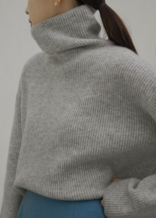 유연한 원사로 골을 형성하며 제작되어 터치감과 신축성이 좋으며 터틀넥은 힘이 있어 끝까지 펴올려 얼굴까지 감싸기에 용이해 더욱 멋스러운 실루엣으로 연출이 가능합니다.