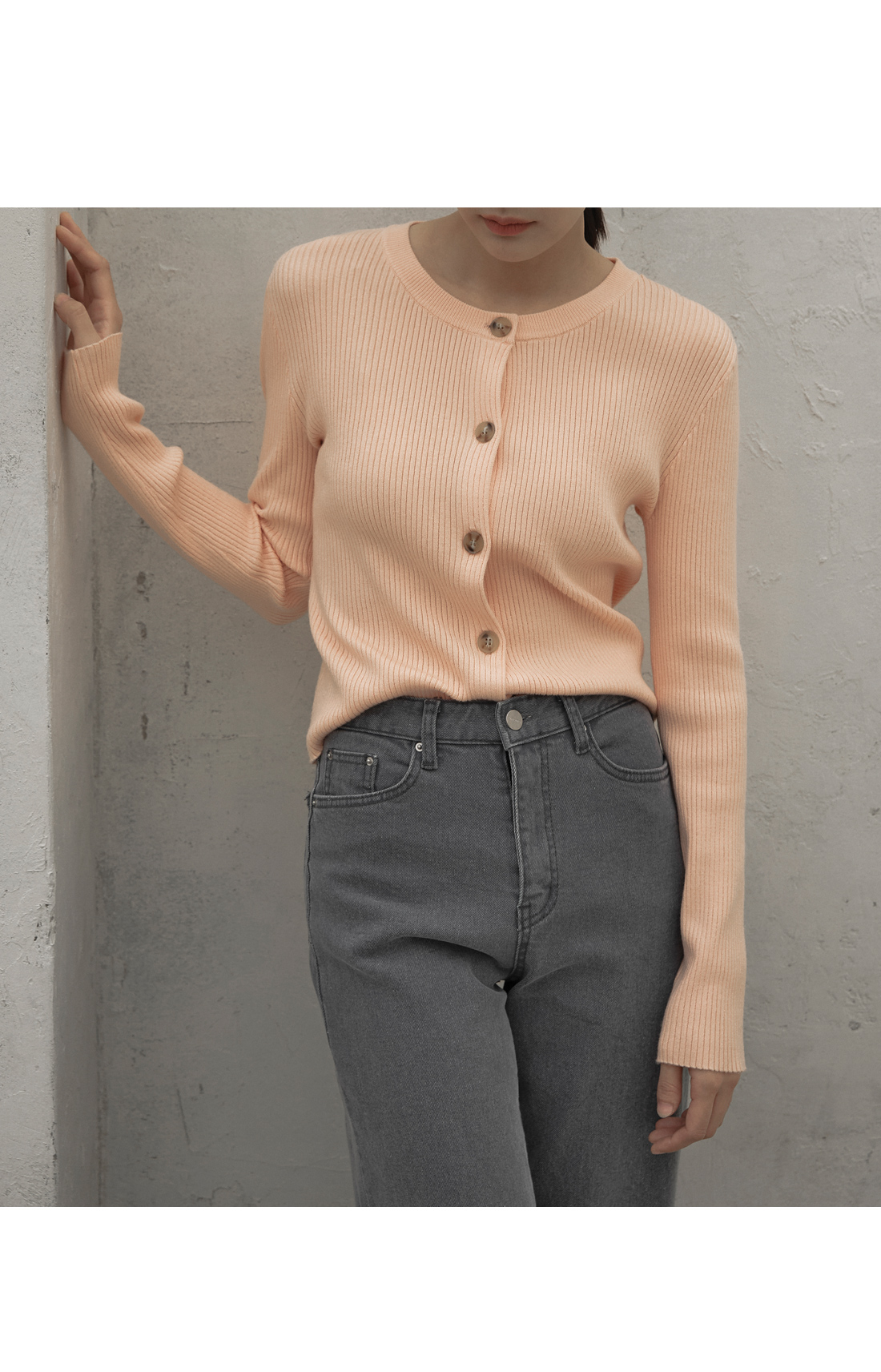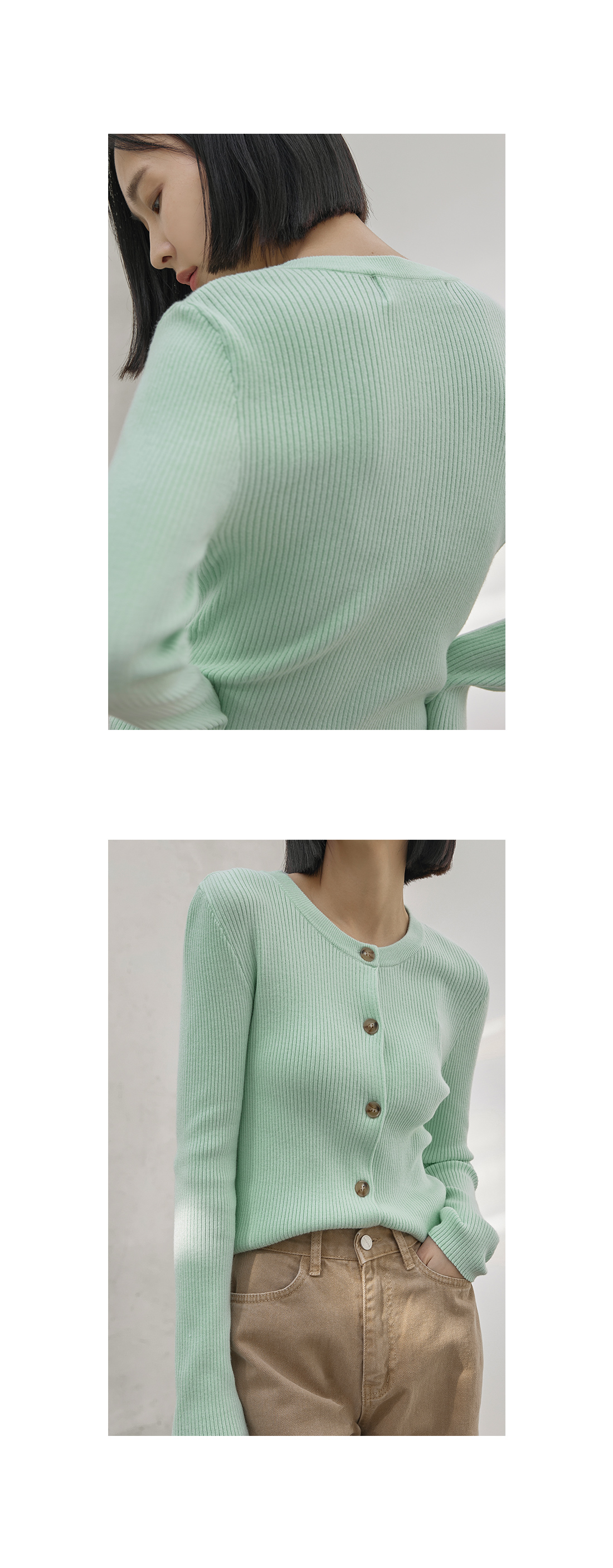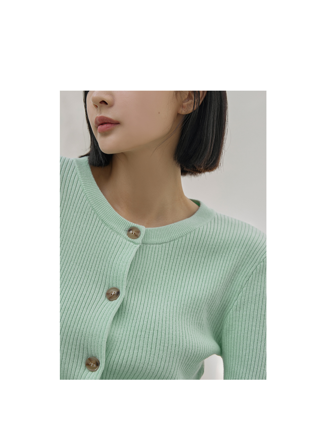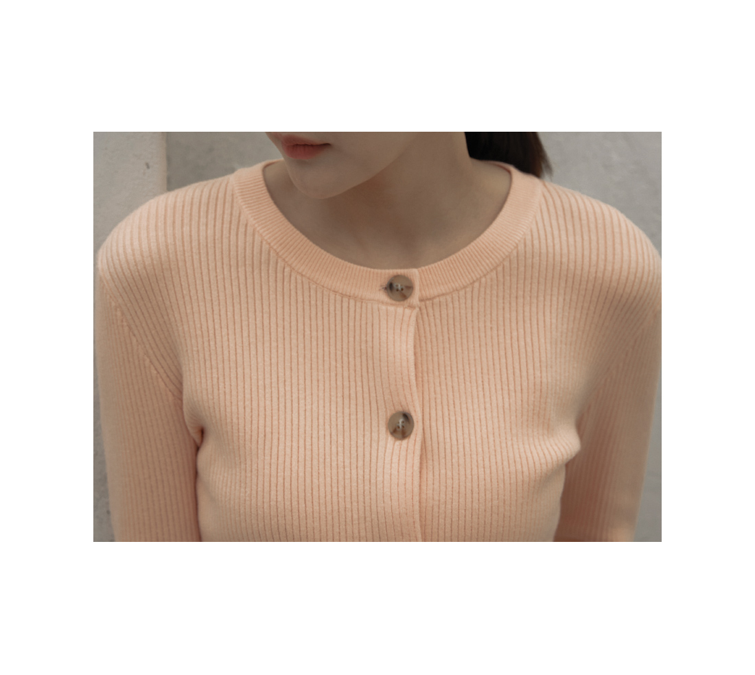 라운드 네크라인에 슬림핏으로 제작된 가디건입니다.