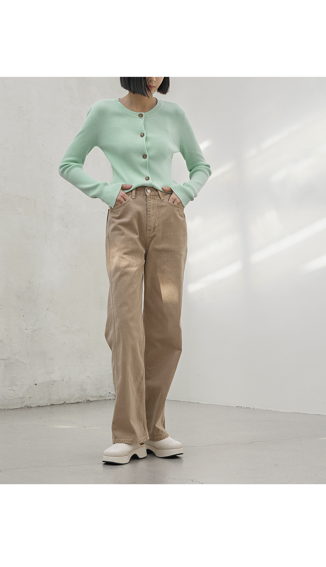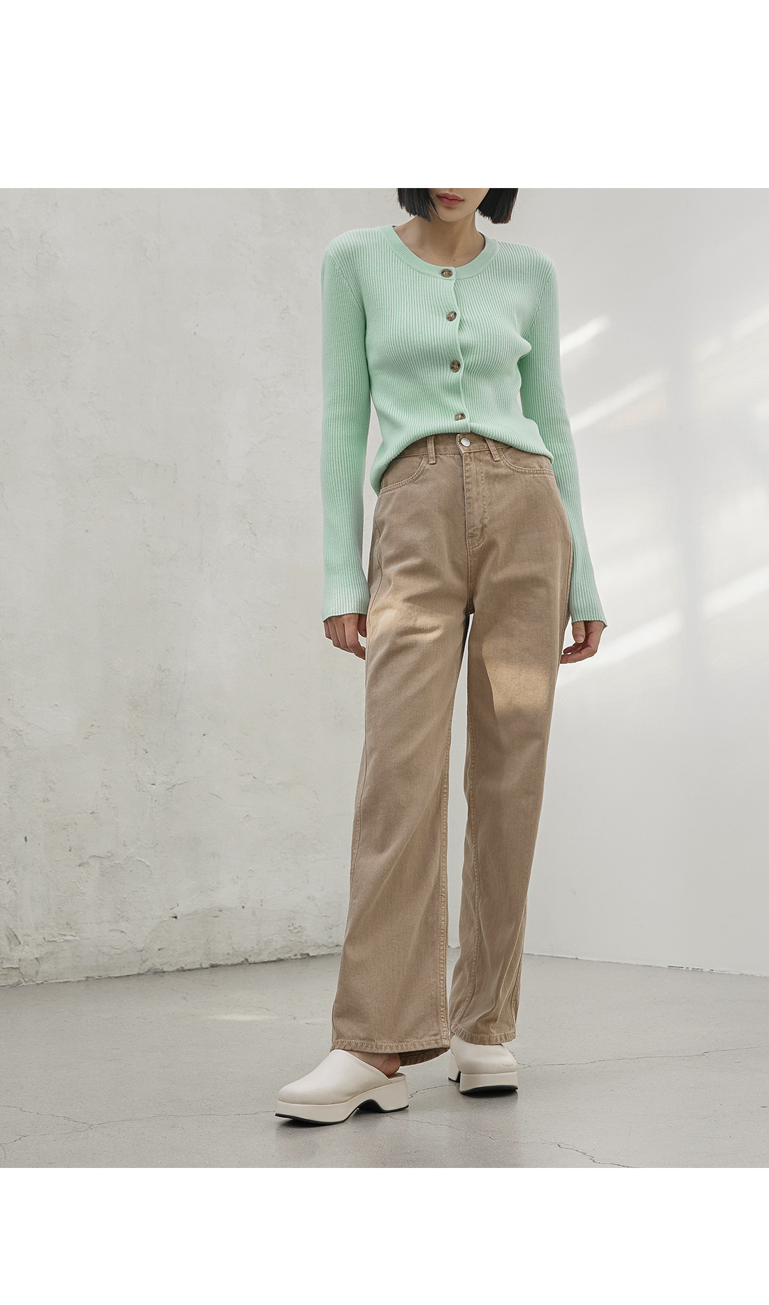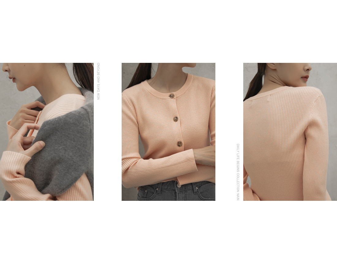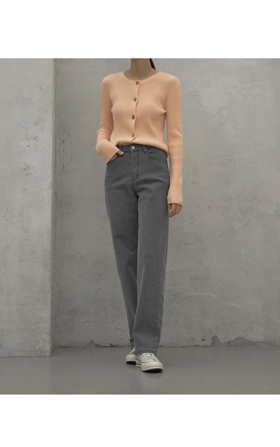 라운드 네크라인에 슬림핏으로 제작된 가디건입니다.