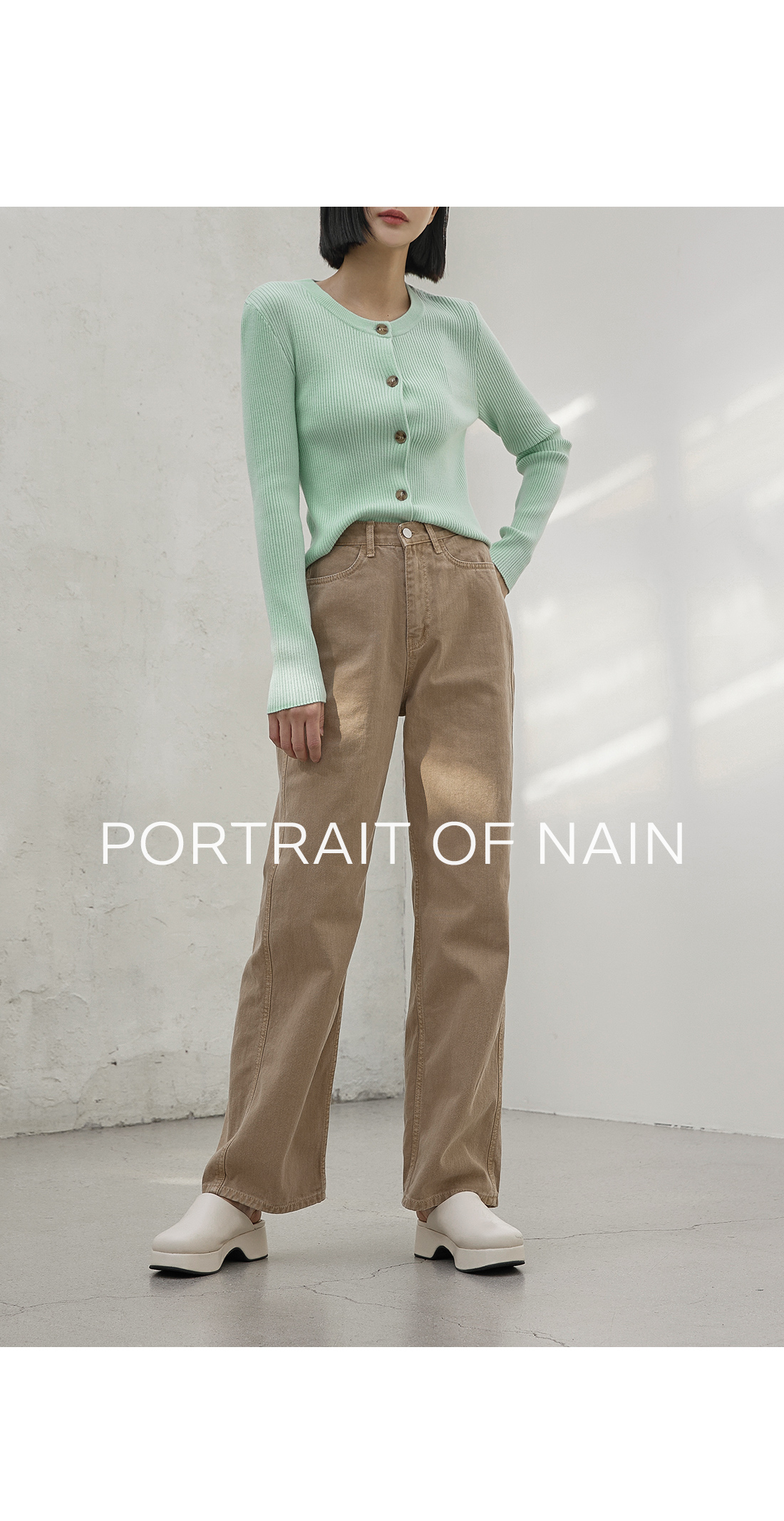 비비드한 칼라와 보카시 단추로 포인트가 되는 가디건으로