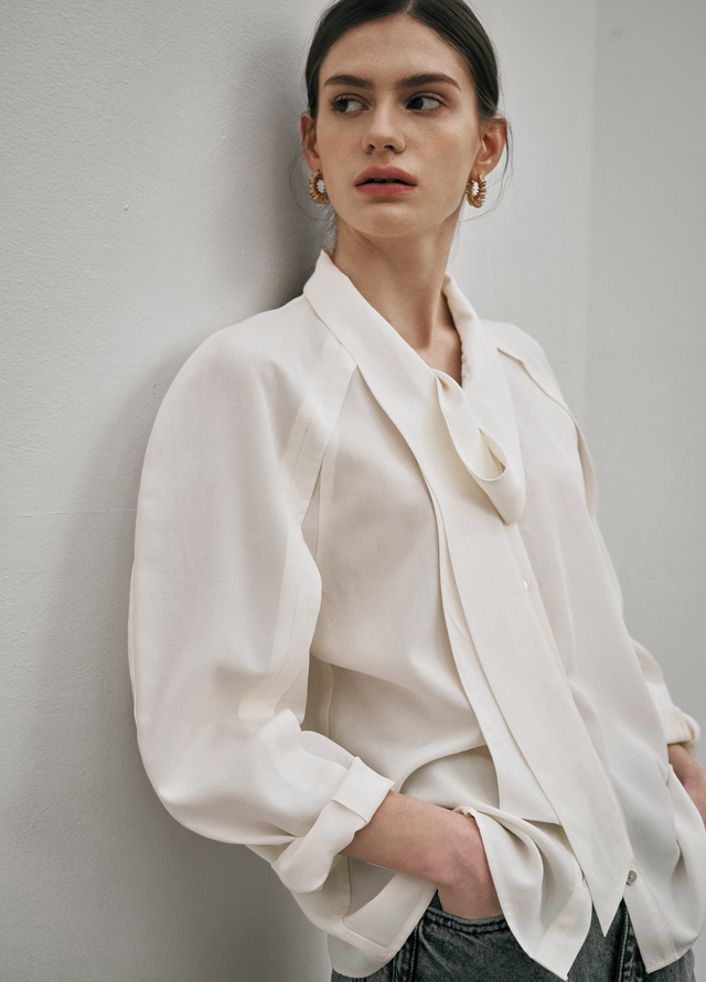 타이 디테일로 포인트를 준 블라우스 입니다.