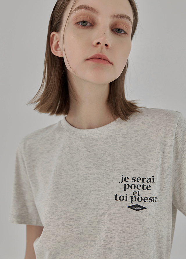포엣 레터링 슬림 티 입니다. 베이직한 세미 슬림 실루엣으로 사이즈 구애 없이 착용 가능하며, 데일리로 착용하기 좋은 아이템입니다.