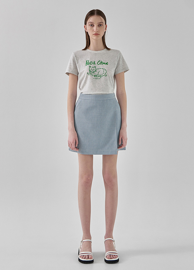 배색 스티치 랩 미니 스커트입니다.