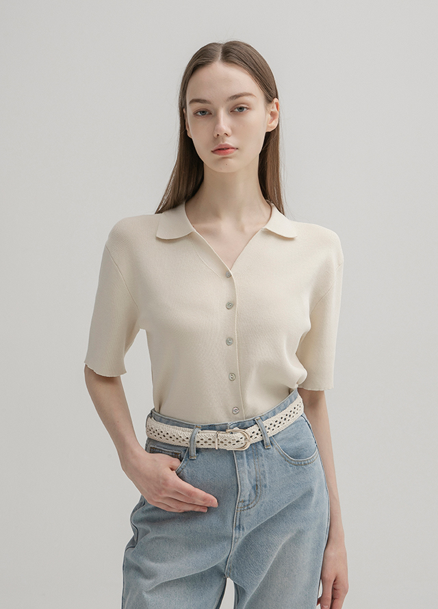 오픈 카라넥 디자인과 쉘버튼 포인트로