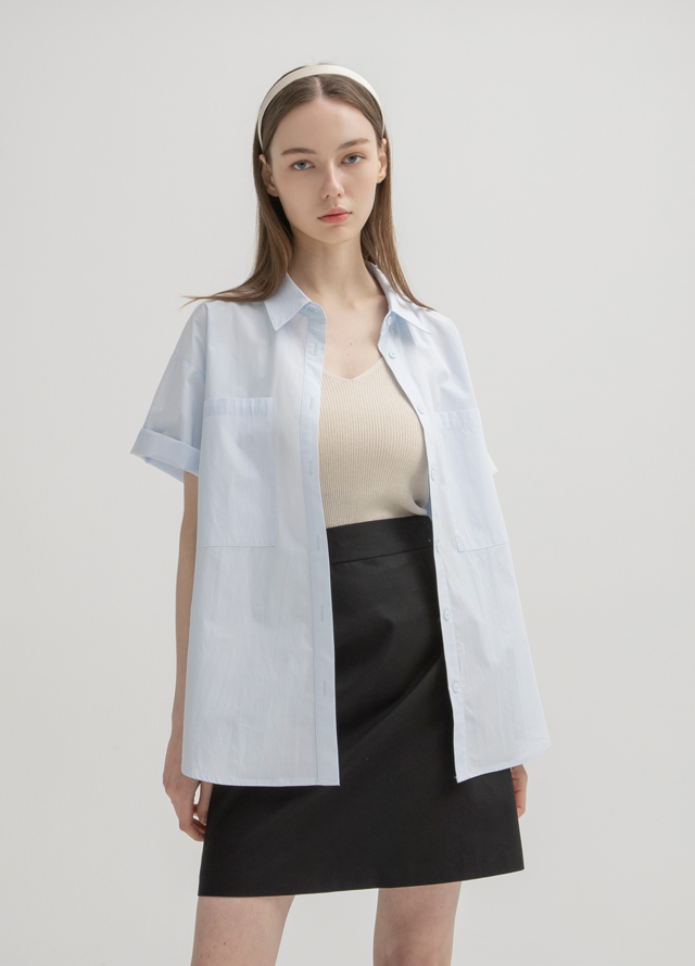 (BL-4007)シンプルビッグポケットオーバーフィットシャツ