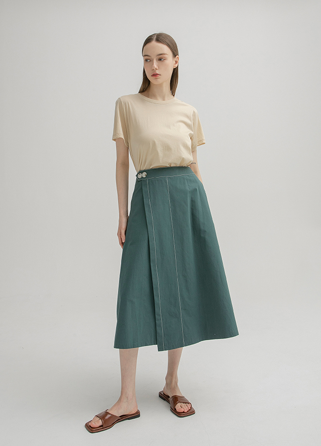 스티치 버튼 백 밴딩 스커트를 소개합니다.