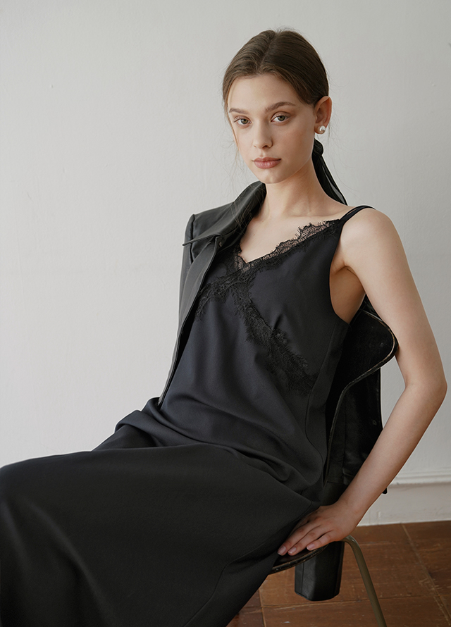 넥라인과 밑단에 레이스 포인트로 슬립 무드를 더했으며,