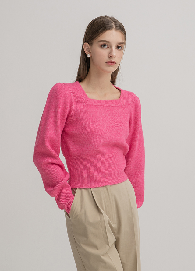 스퀘어넥 소매볼륨 크롭 니트입니다.