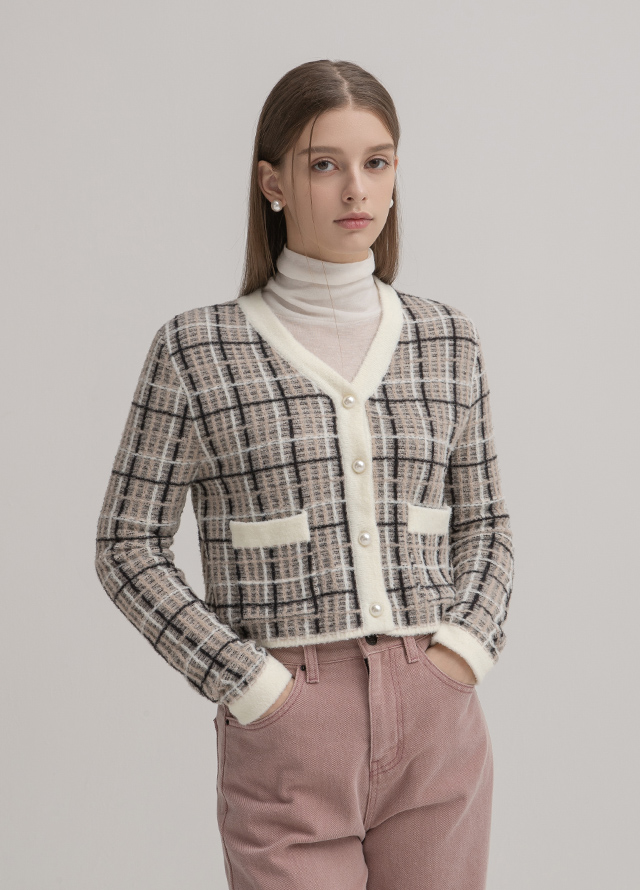 (CD-2008)ヘアリーツイードクロップニットカーディガン