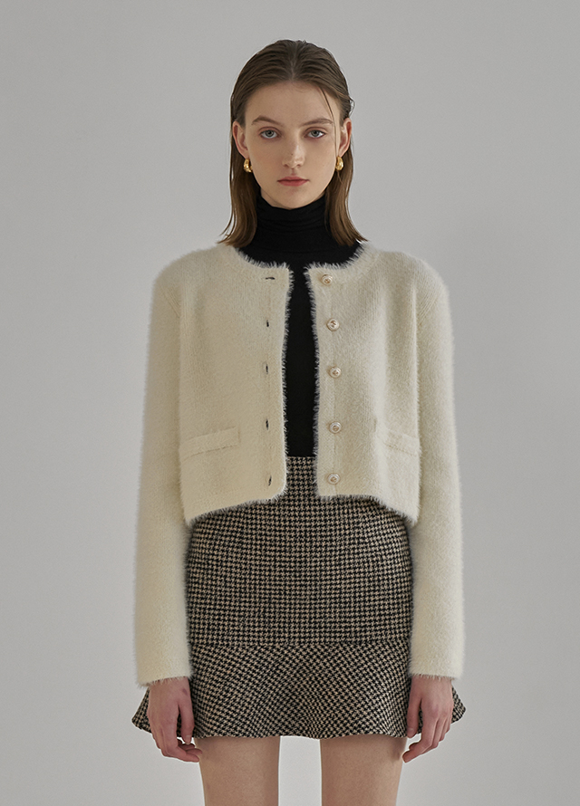 나일론,아크릴, 폴리에스터 혼방사로 제작된 니트 자켓으로 표면감이 따뜻하며 보송보송한 느낌으로 부드러운 착용감과 우수한 보온성을 선사합니다.