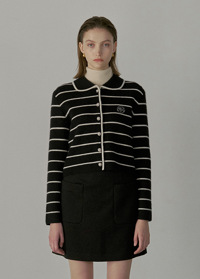 메이 배색 스트라이프 자수 니트 가디건입니다.