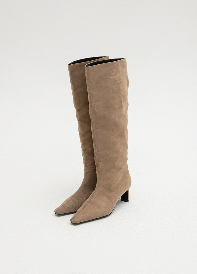 스웨이드 키튼힐 루즈 롱 부츠를 소개합니다.