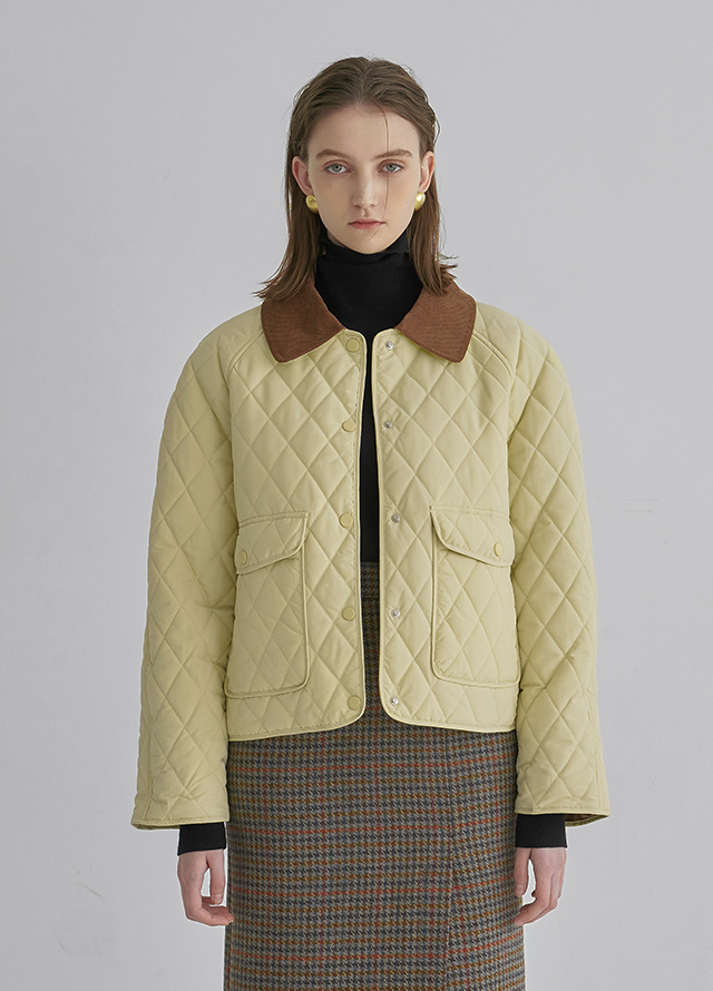 코듀로이 배색 퀼팅 패딩 자켓 입니다.