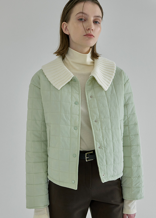 라이트 퀼팅 니트카라 숏 패딩 자켓입니다.