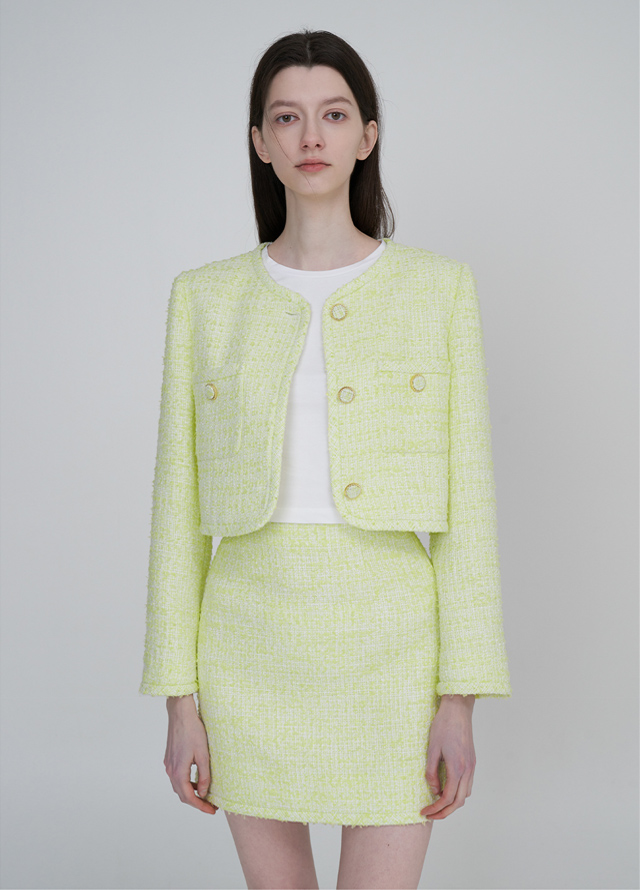 (JK-2815)イルジョンツイードセットアップクロップジャケット