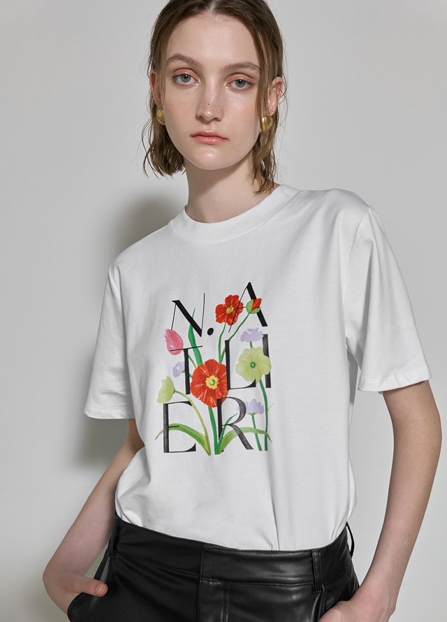 플라워 가든 나인 아틀리에 티입니다. 도톰한 면소재로 제작되어 촉감이 좋고 고급스러운 착용감을 선사하는 티셔츠입니다.