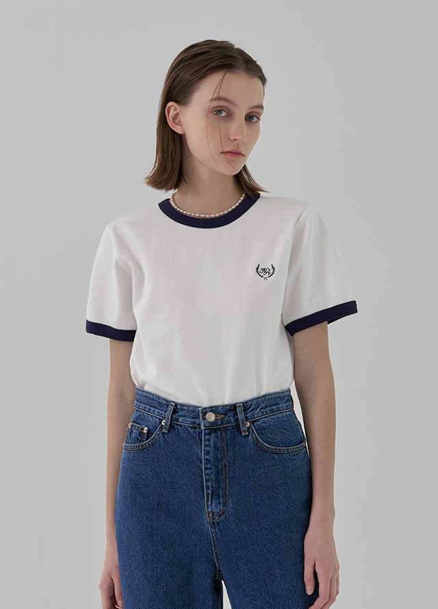 (ZNT-6609)CLASSIC EMBROIDERY COLOR LINE TEE