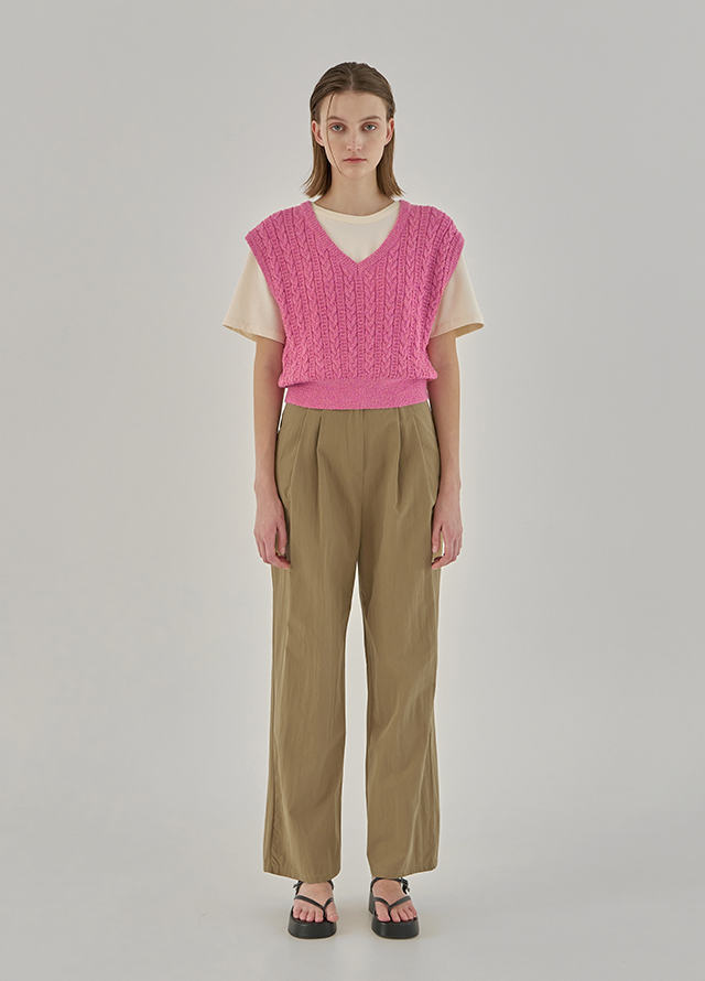 투턱 디테일과, 허리 비조 디자인으로 포인트 주었으며, 각자의 사이즈에 맞도록 비조를 조여 착용할 수 있는 아이템입니다.