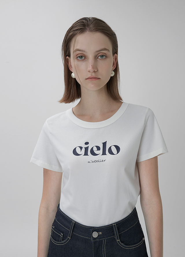 씨엘로 크롭 슬림 티입니다. 립 더블 스티치로 포인트를 준 티셔츠를 소개합니다.