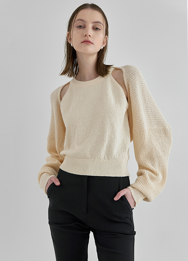 볼레로 가디건 제품은 크롭한 기장감으로 다리가 길어보이는 효과를 주며, 긴 소매장과 여유있는 소매통으로 상체의 군살을 잘 커버해주어 스타일리시하면서도 슬림해보이는 효과를 줍니다.