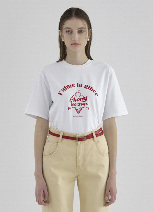 체리 아이스크림 세미 오버핏 티입니다. 나인만의 상큼하고 유니크한 무드의 체리 아이스크림 일러스트 프린팅이 돋보이는 반팔 티셔츠입니다.
