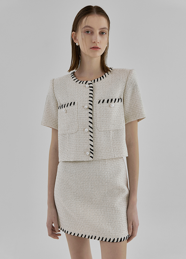 (JK-2825)ピュアセットアップツイードクロップジャケット